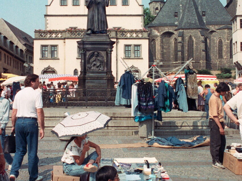 Dresden, 19.12.1989 Besuch von Bundeskanzler Kohl in Dresden Foto: Demonstration waehrend des Besuches von Bundeskanzler Helmut Kohl