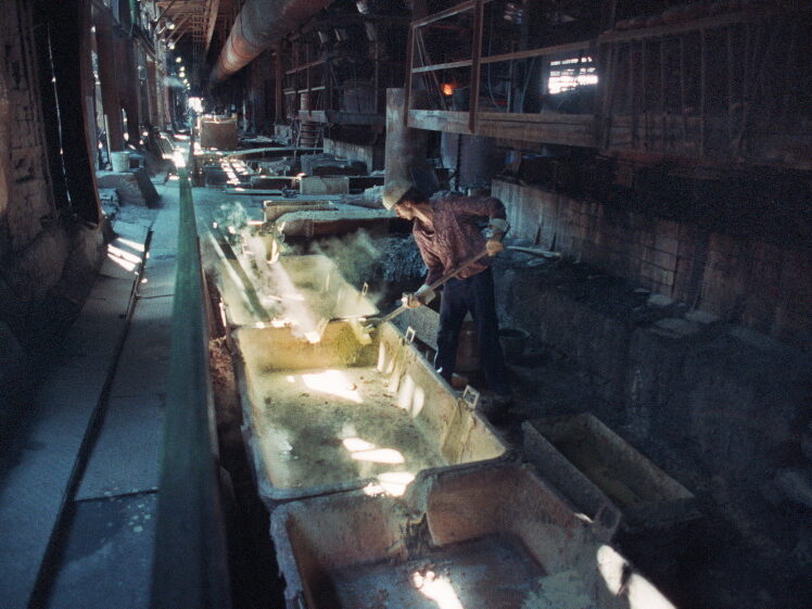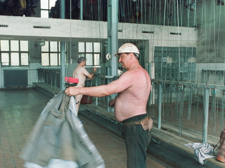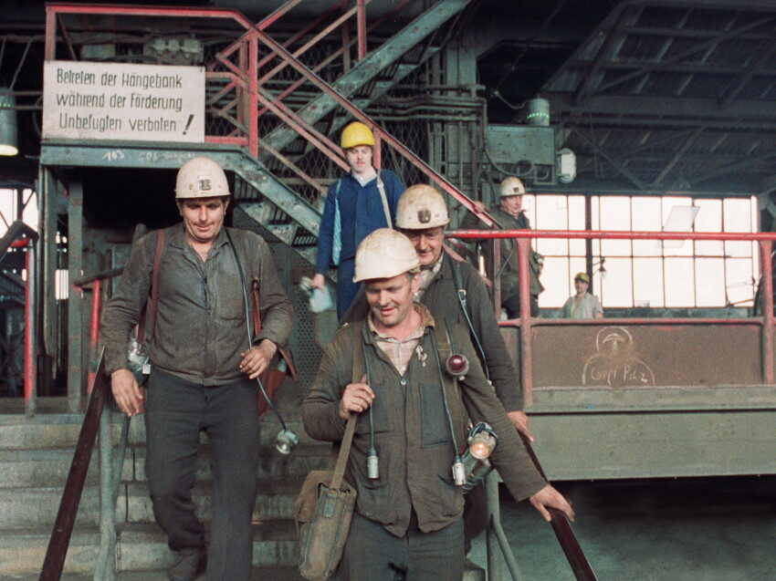 Bautzen, 06.01.1990 Foto: junger Mann schaufelt Kohlen in ein Haus